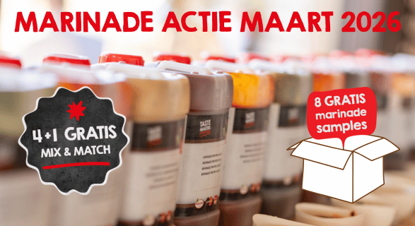Profiteer in maart van onze introductieactie: bij aankoop van een promo box met 8 marinade samples ontvang je extra voordeel. Ontdek hoe deze strijkmarinades jouw aanbod versterken en klanten verleiden tot herhaalaankopen.