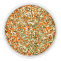 Groente- en kruidenmengsel bevat groenten als wortel, prei, ui en paprika en kruiden als peterselie en selderij.